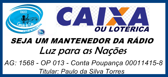 Faça uma doação e ajude a rádio Canção do céu a continuar transmitindo! Seu apoio é essencial para manter nossa programação no ar! <> Doe através da chave pix 67996399559 - Paulo da Silva Torres - Banco caixa econômica federal - DEUS TE ABENÇOE SEMPRE!